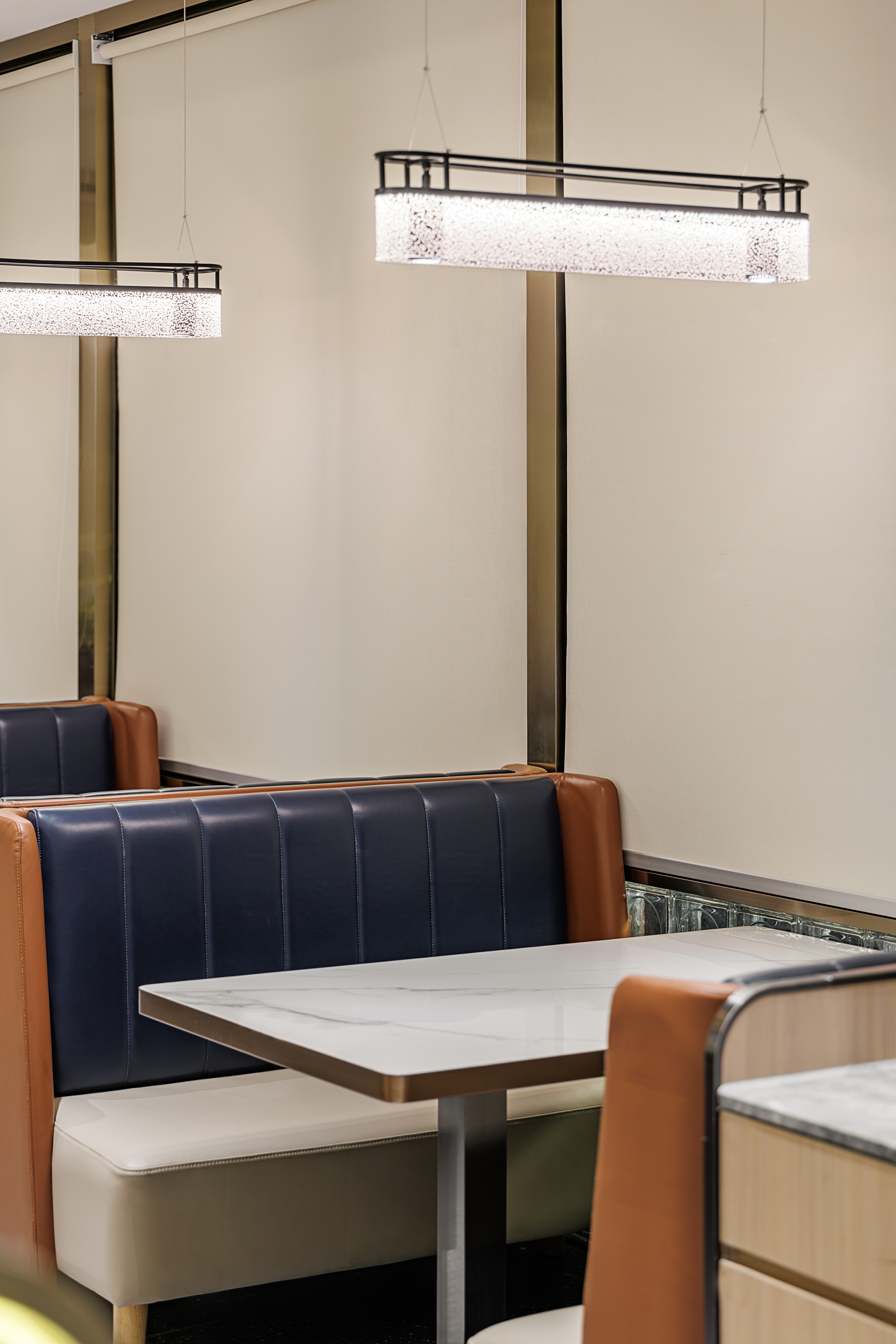 本案 #餐厅设计 项目名称 广盈香港茶餐厅·虎门店 项目面积 369㎡ 项目地点 广东省东莞市虎门镇连升北路68号九龙购物广场一楼 项目用材 石材、艺术漆、玻璃、不锈钢 项目摄影 金松建筑空间摄影 #餐厅设计公司 艺鼎设计